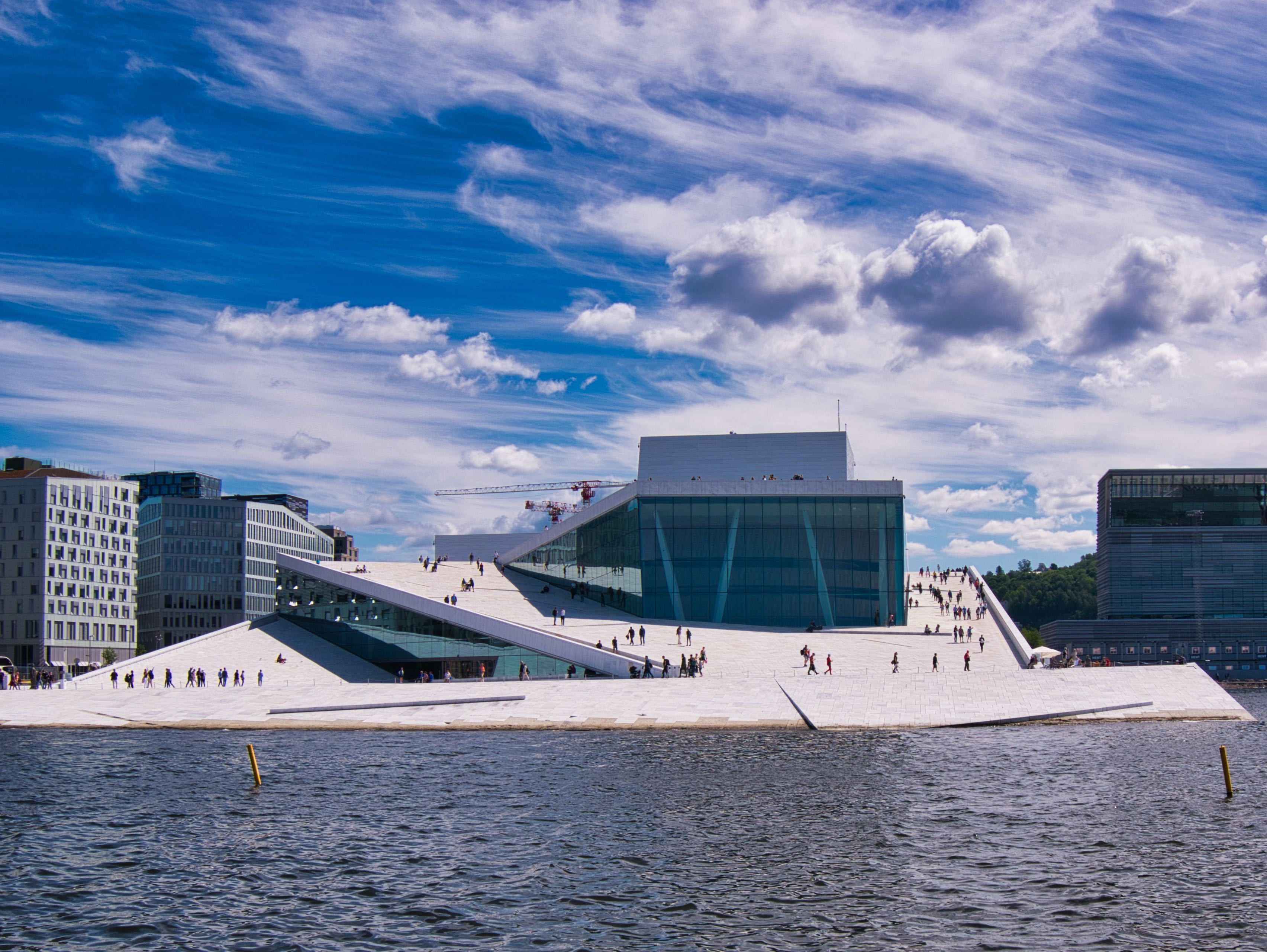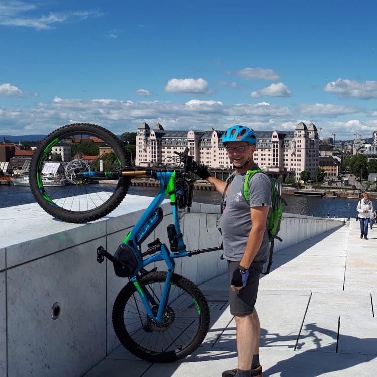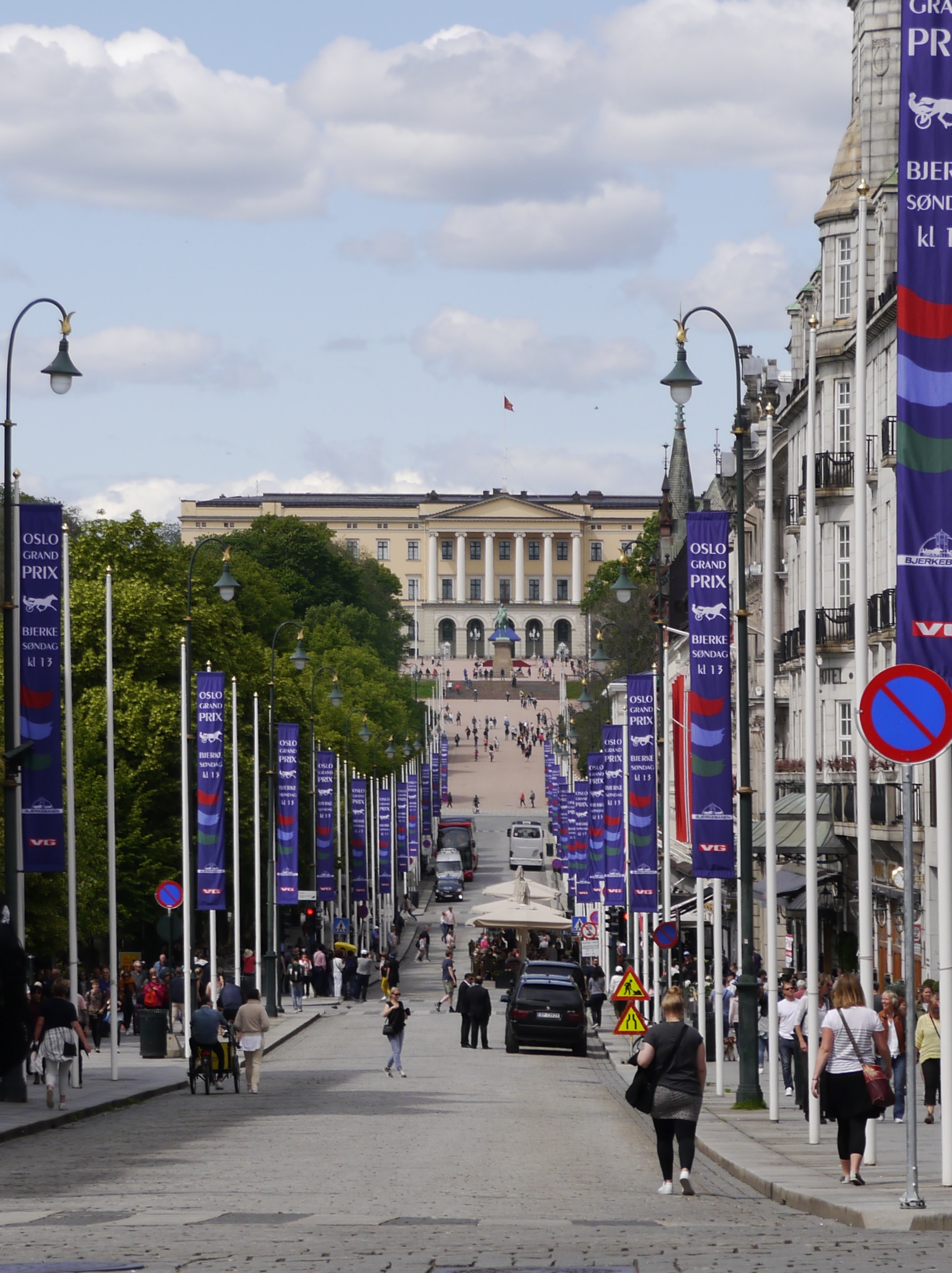 Von Akershus geht es weiter durch die Stadt zur Neuen Oper, der Stefan mit seinem MTB sogar aufs Dach steigt und dem nebenan liegenden Barcode-Viertel, das seinen Namen von der Optik seiner Architektursprache hat. Nächste Station Hauptbahnhof und von dort schieben wir die Räder durch die Karl-Johan-Gate vorbei am „Storting“, dem Norwegischen Parlament zum Schloss. Der König ist zuhause, wie uns die Flagge wissen lässt. Aber jetzt müssen wir zurück und mit den Hunden ans Wasser. Ein bisschen Training entlang der Wasserkante und ein paar Runden in der Ostsee schwimmen. Abends wird der Grill angeworfen und wir sitzen noch lange draußen, denn dunkel wird es schon in Oslo nur mal kurz und das sehr spät.