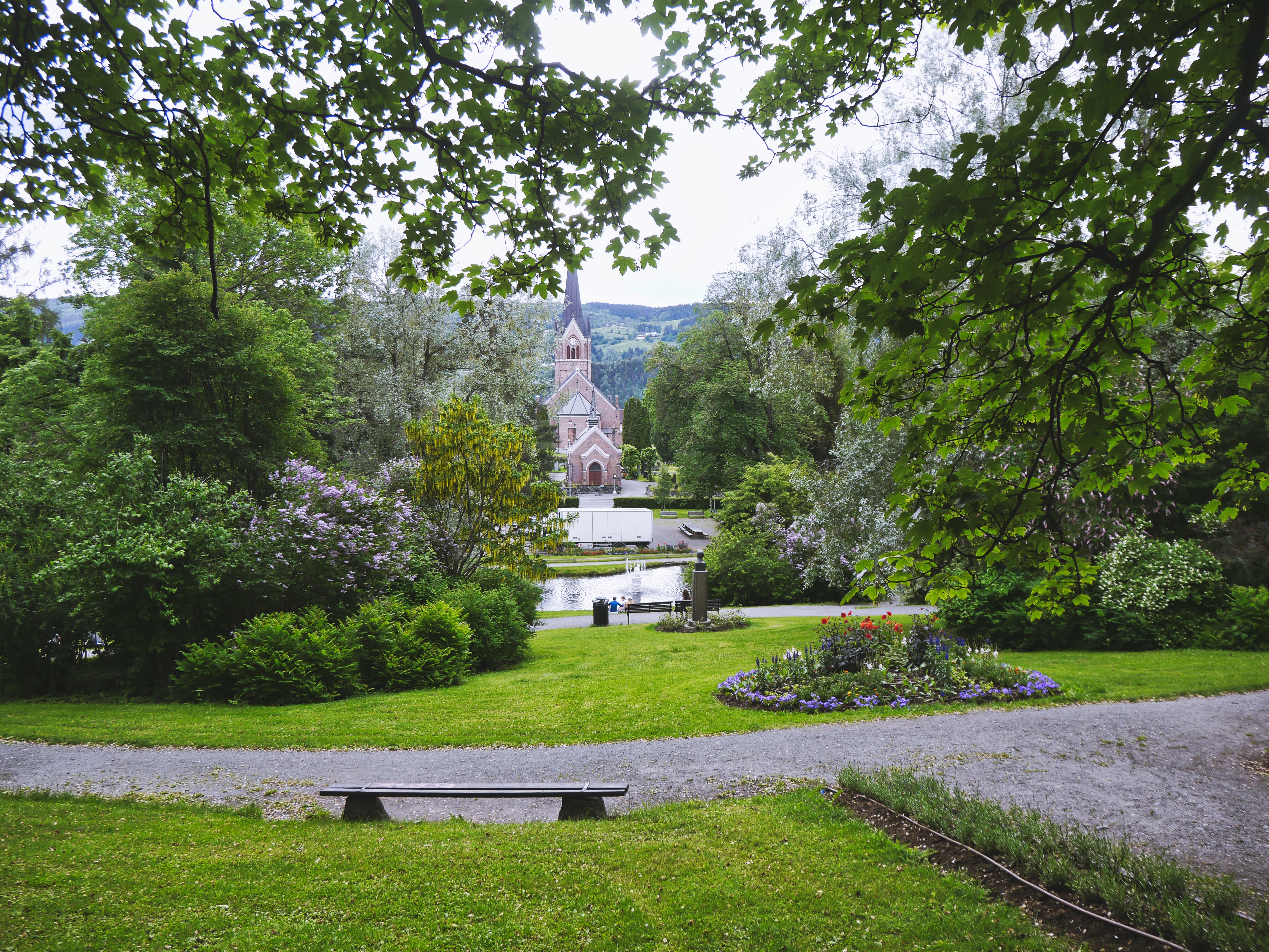 Zunächst nehmen wir uns aber mal die Zeit, Lillehammer kennenzulernen und sind ehrlich erstaunt. Wir hatten irgendwie erwartet, Lillehammer sei bedeutend größer. Immerhin wurden hier 1994 Olympische Winterspiele ausgerichtet. Ich versuche mir das Ereignis in diesem kleinen, schmucken und wirklich ansprechend sympathischen Ort vorzustellen. Es will mir nicht gelingen. Es gibt eine Backsteinkirche im Ortskern und dahinter einen hübschen kleinen Park. Es ist Freitag Abend und auf einer kleinen Bühne spielt eine Jazzband. Drumherum sitzen Menschen an den Tischen des Park Cafés mit einem Glas Wein oder Bier in der Sonne. Überall im Park liegen Menschen auf den Rasenflächen oder sitzen auf Parkbänken. Die Stimmung ist so leicht und wunderbar, wie sie nur in den Nordischen Ländern während der kurzen Sommer sein kann. Jeder genießt das Leben.
