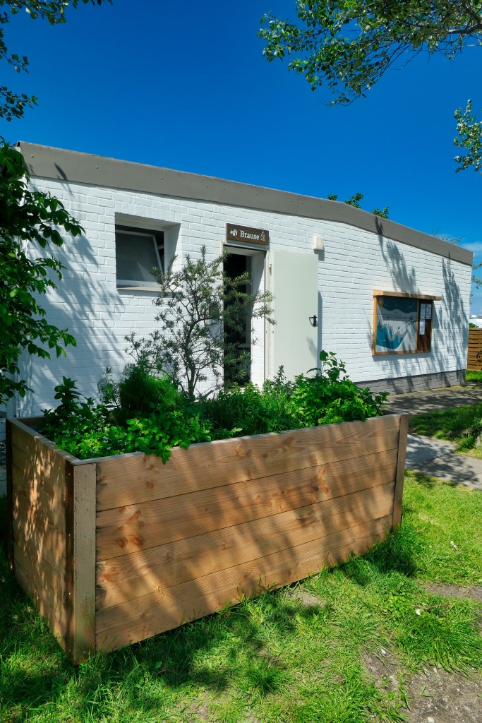 Mein persönliches Highlight: vor einem der Waschhäuser steht ein Kräuterhochbeet mit Minze, Petersilie, Rosmarin etc. – von dem man sich zum Kochen bedienen kann. Ein älterer Herr, einer unserer Platznachbarn, kam über´s ganze Gesicht strahlend vom Duschen zurück, weil er dort frische Minze für sich gefunden hatte. Solche Details sind es, die gute Plätze von außergewöhnlichen Plätzen unterscheiden. Wir fühlen uns übrigens vom Konzept und auch von der Lage mitten in einem Naturschutzgebiet sehr an unseren Lieblingsplatz auf Sardinien erinnert: Isola die Gabbiani mit Rupi´s Chillin´out unten am Strand in Porto Pollo. Alles sehr entspannt.